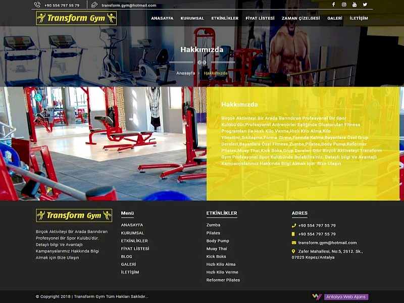 Transform Gym Spor Salonu ve Fitness Merkezi ; Profesyonel Antrenörler eşliğinde sporun tadına varın.Birçok aktiviteyi bir arada barındıran Profesyonel antrenörler eşliğinde oluşturulan Fitness programları ile spor olanaklarını sizlere sunmasına olanak sağlamaktan mutluluk duymaktayız..